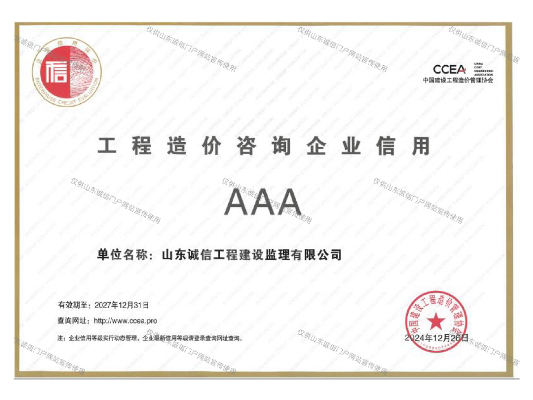 1、中国施工企业管理协会AAA级企业信用等级证书
