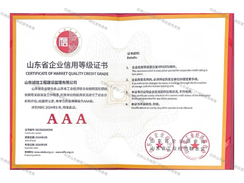 6、山东省企业信用等级AAA